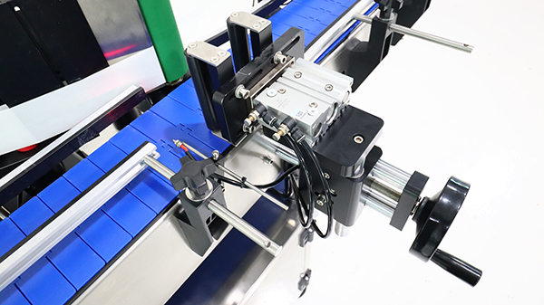 4. 當傳送帶到達了某個特定的位置時,標簽帶驅動輪會加速到與傳送帶匹配的速度,貼上標簽后,再減速到停止。